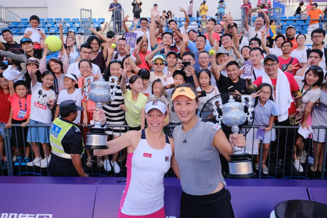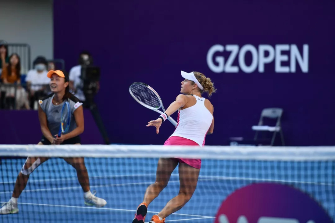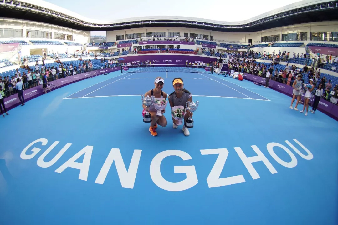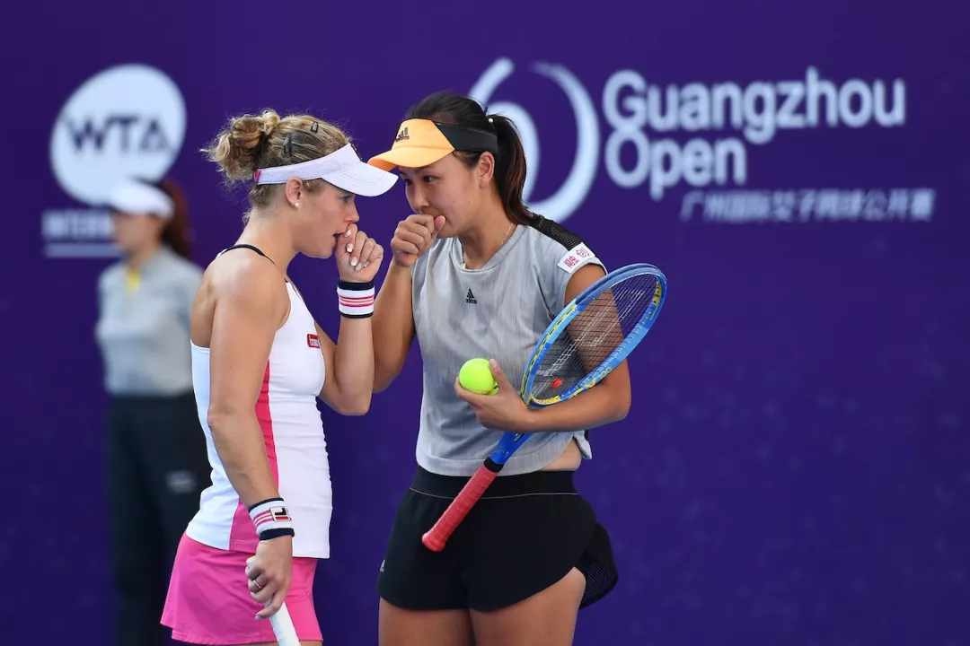 2019广州国际女子网球公开赛,伴随着中国金花彭帅与德国老将西格蒙德高高举起奖杯而落下帷幕。在此前的女双决赛上,彭帅/西格蒙德6-2,6-1直落两盘击败瓜拉奇/沃尔莫斯组合,以不失一盘的战绩问鼎女双。首轮,中德组合6-3,7-5击败佩雷斯/圣玛丽亚;次轮,彭/西组合6-1,6-2轻取白莉/利克米亚组合;半决赛,在与同胞段莹莹/杨钊煊的较量中,中德组合在首盘2-4落后的情况下,连下十局,6-4,6-0击败对手闯入决赛;决赛上,面对半决赛淘汰3号种子克鲁尼奇/马洛扎娃的黑马组合瓜拉奇/沃尔莫斯,中德组合仅让对手拿到三局,6-2,6-1轻松获胜,夺得女双冠军。